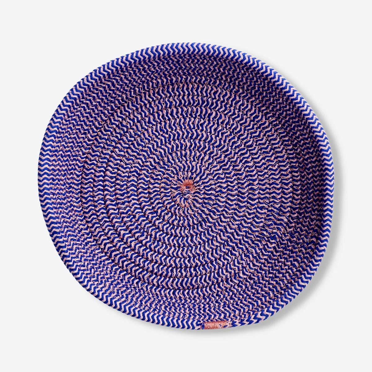 This cotton rope bread basket adds a cosy and colourful touch to your dining table. Made of cotton and measuring 23 x 6 x 23 cm, it features a multi-coloured blue and pink woven design that gives it a soft and inviting look. Perfect for serving bread, pastries, or fruit, it keeps your table neatly arranged while adding a decorative accent. The flexible cotton material makes it lightweight and easy to move, while its round shape fits beautifully into any table setting. Ideal for everyday meals or casual gatherings, this bread basket combines practicality with a warm, homely feel that brightens up any dining experience.