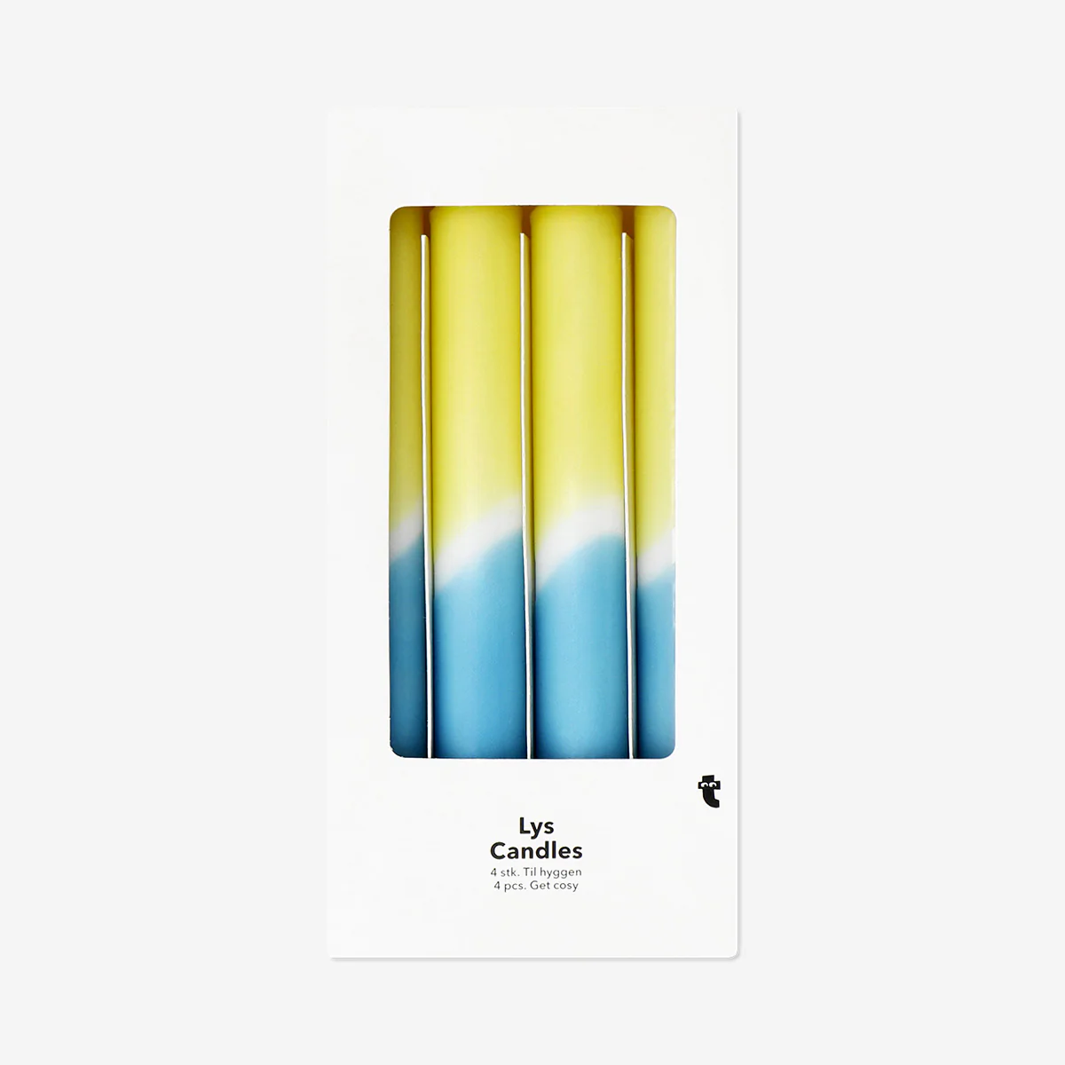 Dip dye dinner candle in blue and yellow - 4 pcs