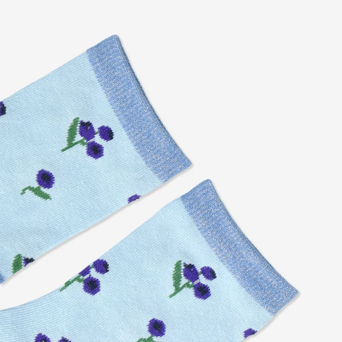 Pep up any outfit and bring colour to your feet with the fun socks with blueberry print. The socks fit EU sizes 36-38 and are made of cotton, 71% recycled polyester, elastane and metallised fibre. Available in multiple designs.